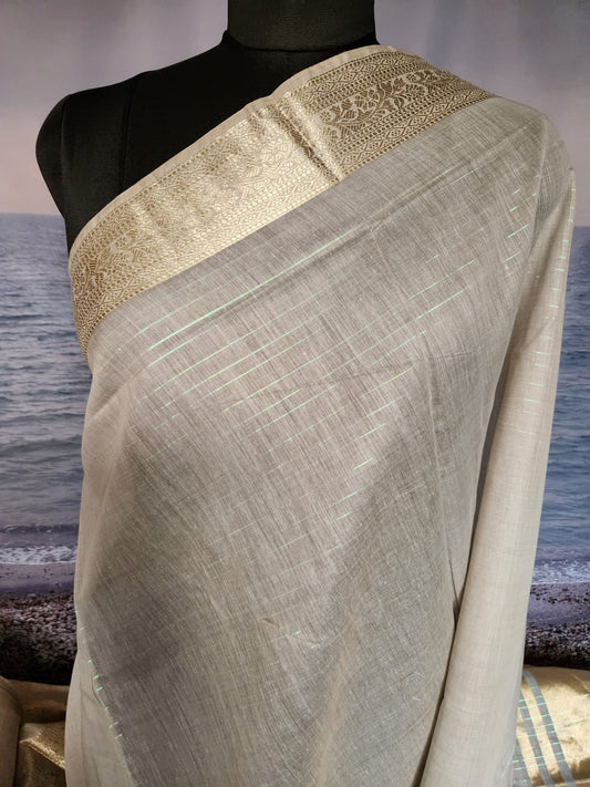 Elegant Grey Pure Handloom Khadi Silk Saree with Soft Zari Work