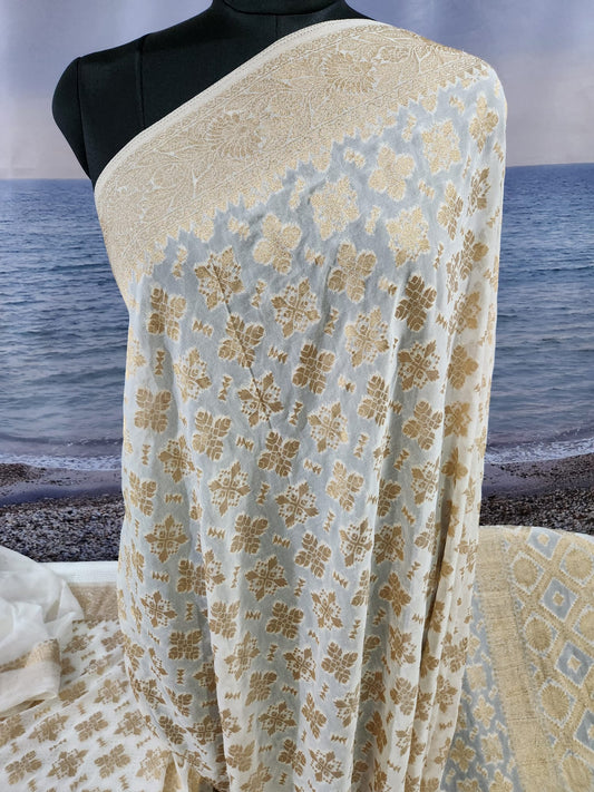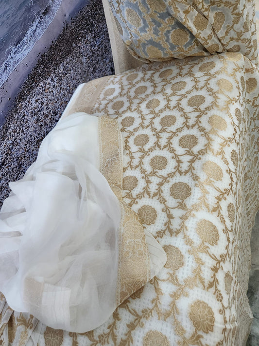 Dyeable White Pure Georgette Saree with Pure Soft Floral Zari Woven Work