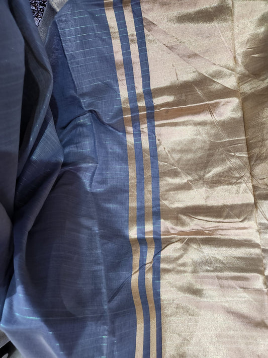 Beautiful Blue Pure Handloom Khadi Silk Saree with Soft Zari Work