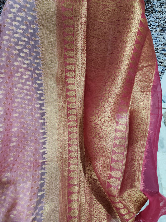 Elegant Pink Pure Georgette Saree with Soft Zari Work