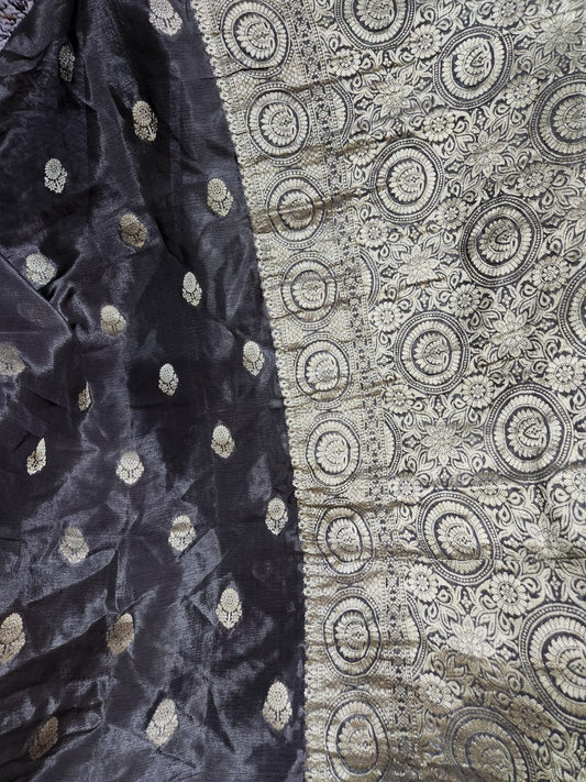 Elegant Grey Pure Chinon Saree with Soft Zari Work
