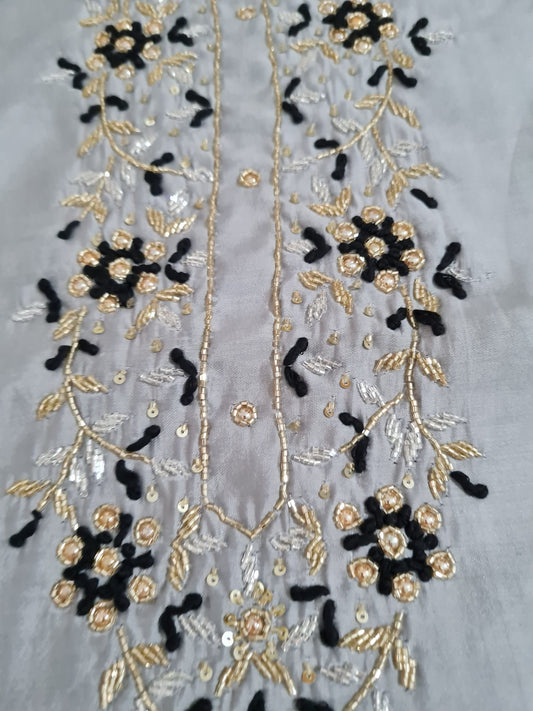 Elegant Grey Muslin Silk 3 Piece Suit with Soft Crepe Lining
