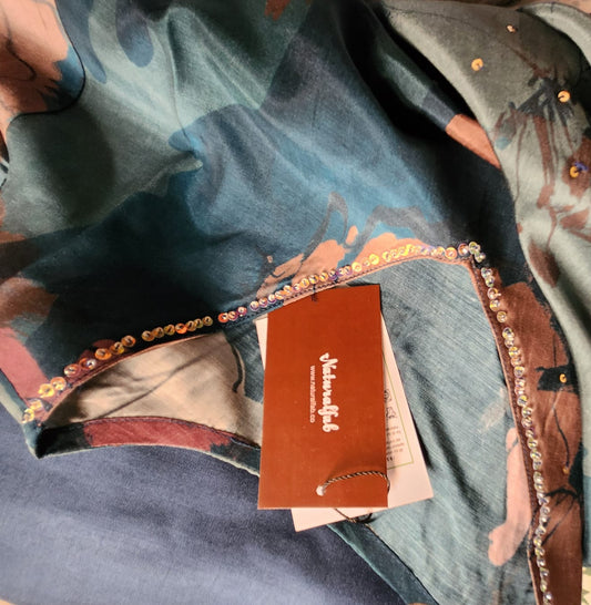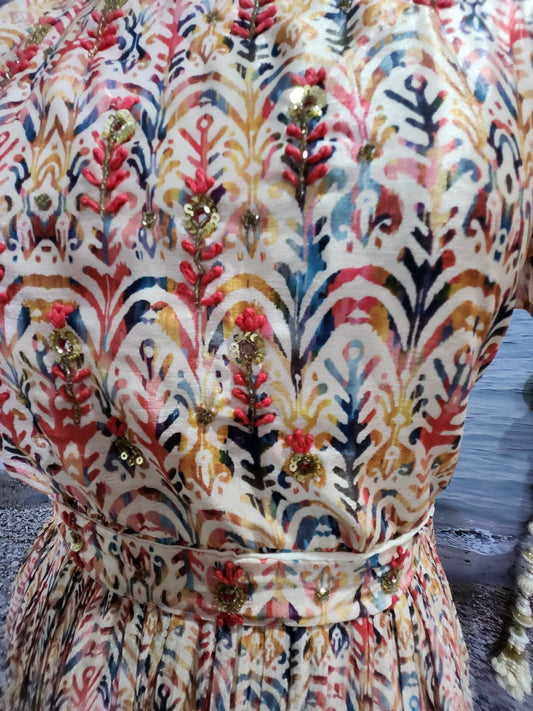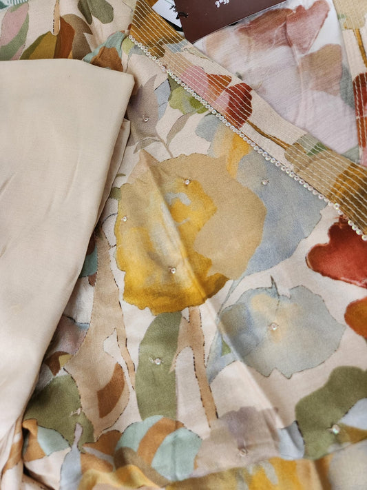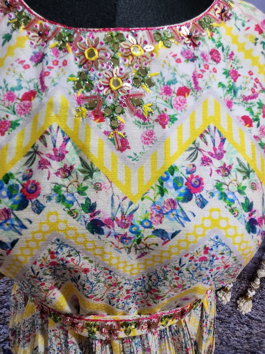 Floral Crepe Silk Gown with Fine Handwork