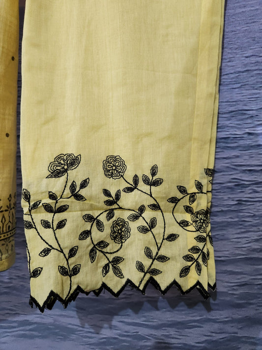 Premium Self Woven Cotton 3 Piece Suit in Yellow