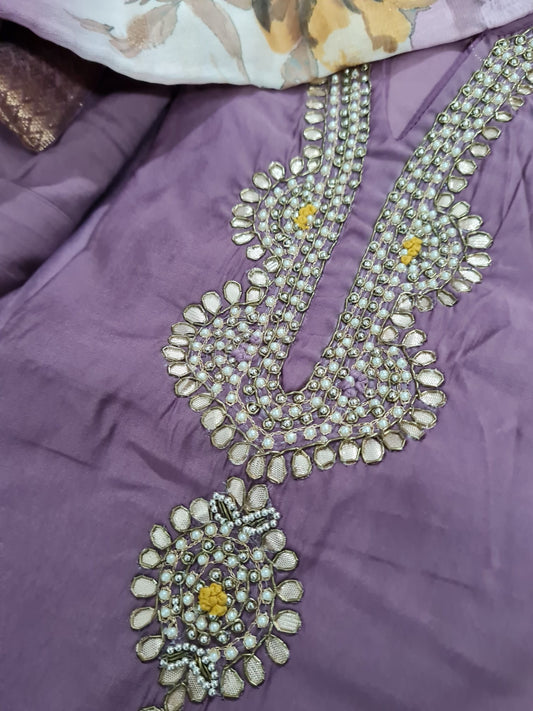 Muslin Silk 3 Piece Suit with Soft Crepe Lining in Purple