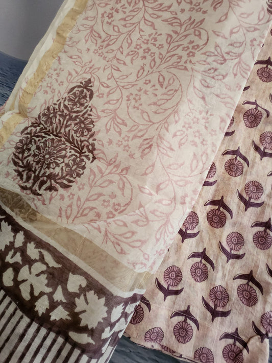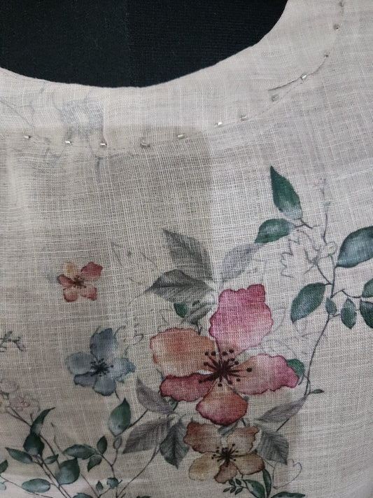 Premium Lenin Cotton 2 Piece Suit in Floral White