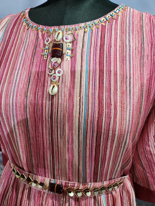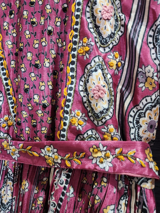 Pink Crepe Silk Gown with Fine Handwork
