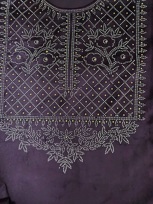 Light Weight Velvet Suits with Swarovski Work in Purple